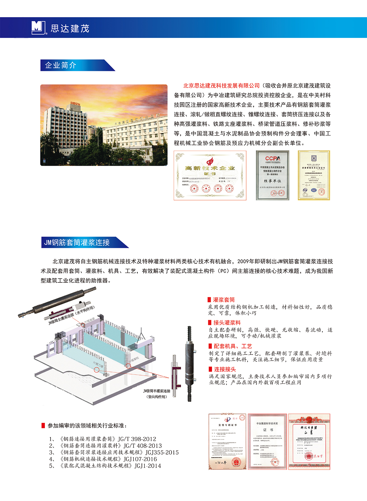 申博太阳城在预制装配式建筑关键节点----钢筋套筒灌浆连接领域的产品开发、科研成果、规范编制、工程应用等全方位走在国内前列,比肩国际同行,以核心零配件的中国制造助力了我国建筑工业化发展,得到行业各界高度认同。是国内外该领域认可的特色专业品牌。