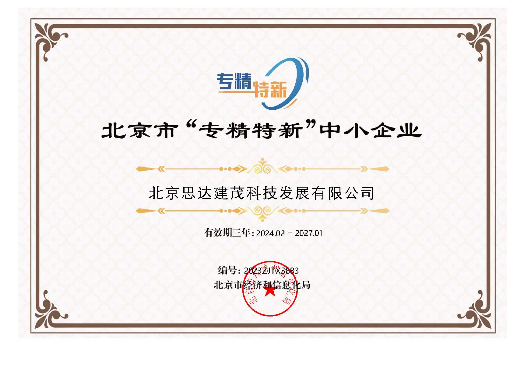 被评定为北京市“专精特新”中小企业